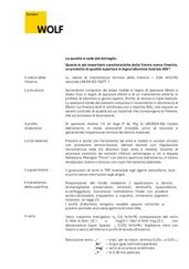 Serramento composto da telaio mobile in legno di spessore 68mm e telaio fisso in legno di spessore 65mm e di un rivestimento esterno in profilati di alluminio a giunto aperto. Profilo di tenuta a tripla battuta. Lo spessore totale dei battenti compreso il rivestimento in alluminio è di 85mm. La finestra Wolf è certificata con il marchio RAL, che impone un severo controllo di qualità sia sui materiali che compongono le finestre, che sul processo di lavorazione.