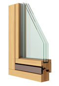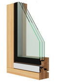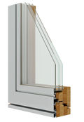 Finestre in legno e alluminio hanno valori di isolamento termico e acustico particolarmente alti. Il telaio in legno interno è la parte portante e isolante, il telaio in alluminio all'esterno crea un aspetto pulito, protegge contro le intemperie, è di lunga durata e non richiede manutenzione. La finestra con tre vetri rende il telaio più snello creando un serramento tecnicamente e esteticamente più elevato.